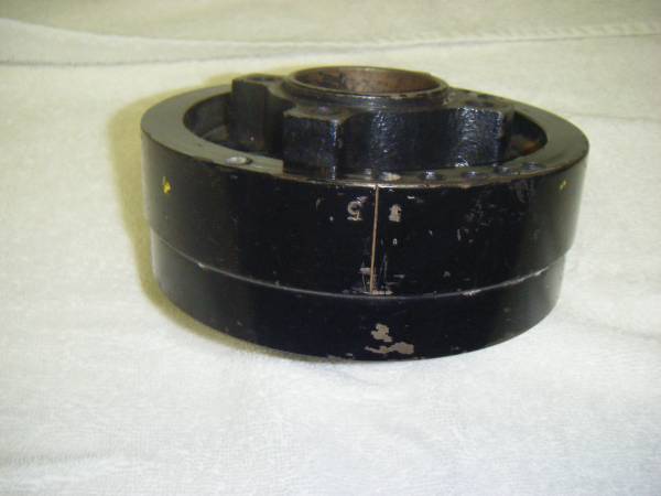 Damper counter weight has been milled out by Roush Racing to be used in an internl balance engine. Marked every 90 degrees for setting valves. Rubber like new.