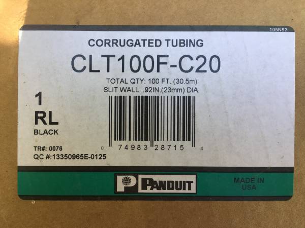 Corrugated Loom Tubing, 60', 0.92" Diameter, Panduit CLT100F-C20 SLIT WALL.