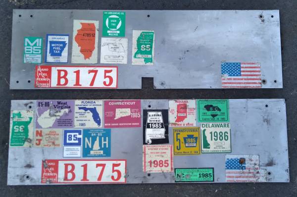 Semi-Truck Tax PERMIT sticker tags, Mid 1980”s on 2 Stainless Steel plates, 9” X 30” - $40