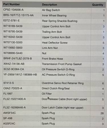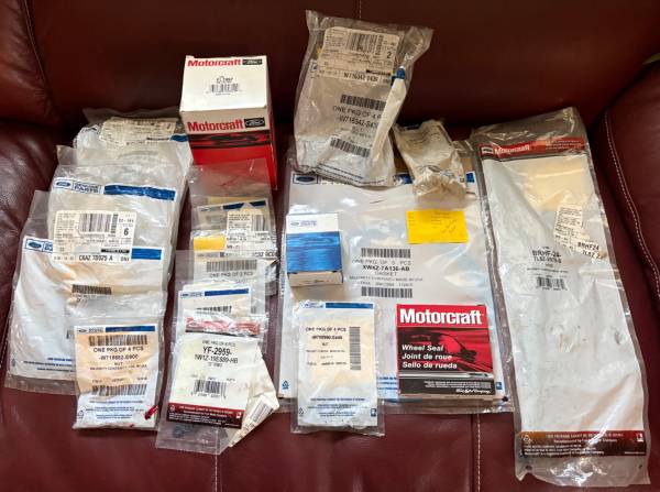 A few years ago, I purchased a box lot of o.e.m. Ford and Motorcraft auto parts from a charity auction. These are purged inventory parts from a dealership in NE Wisconsin. I bought them for a friend who runs an auto shop program at an area high school. These are the parts that he has not needed, so I am selling them as one lot.