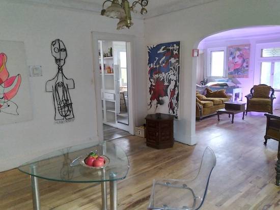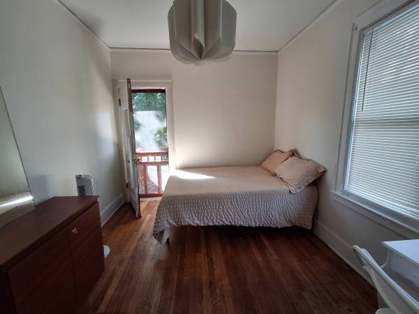 room in co-living house share, furnished at $750 or also unfurnished $580, with small balcony. Cat friendly, 3 roommates total, old house in historic district, focus on art.
