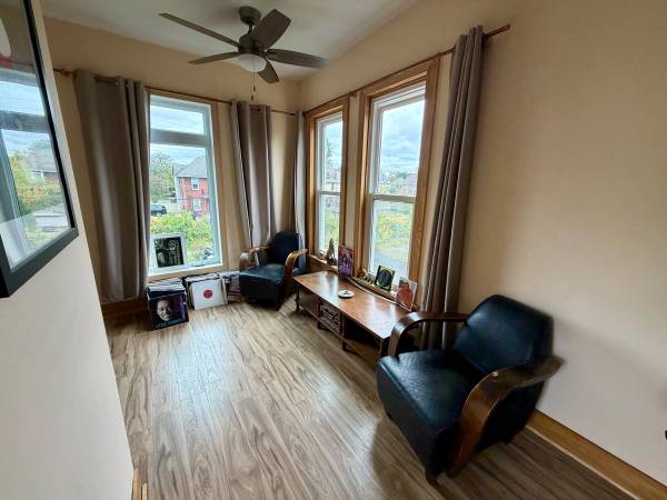 Studio available until May 31st when the lease ends. Separate (private) bathroom and entrance in walk up apartment. Islandview neighborhood in close proximity to Belle Isle. Gas + electric will be split 3 ways. Wifi provided. 2 dogs in the home (no further animals able to be accommodated). Small room but with basement storage. Meant for a light traveler. Big windows provide a lot of natural light.