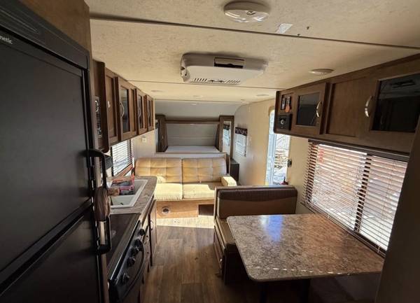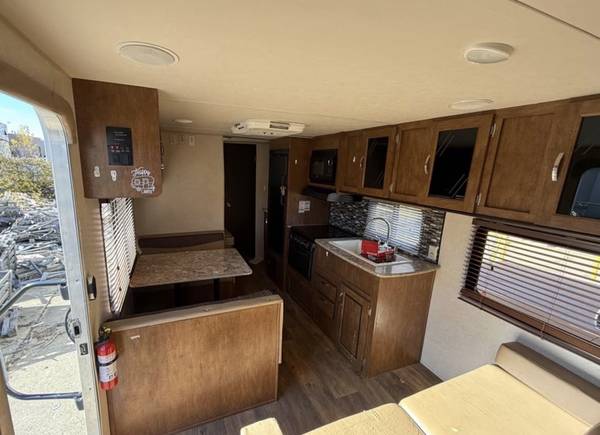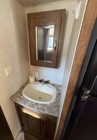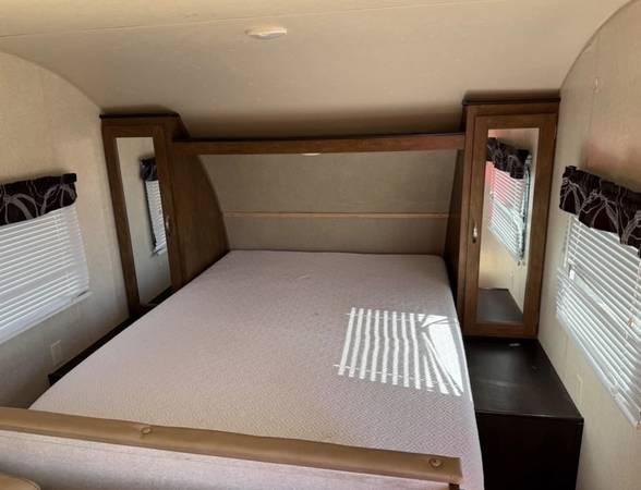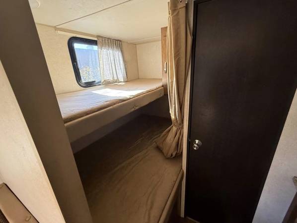 Very clean and nice non smoker no pets Has out door kitchen and swing grill Power awning and jacks 26ft bunk house Half ton towable Clean title
