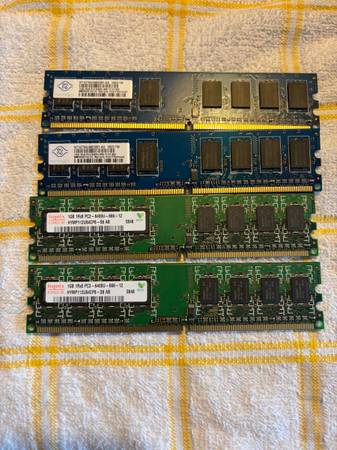 Parts: HP 6649F chassis, power supply, DVD, 3.5 disk, non-working video card, no hard drive. $5. Working: keyboard, mouse. $5 each. Ram, $5 each. Call Doug 313655two907.