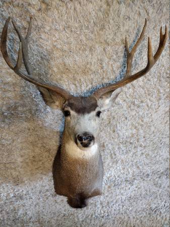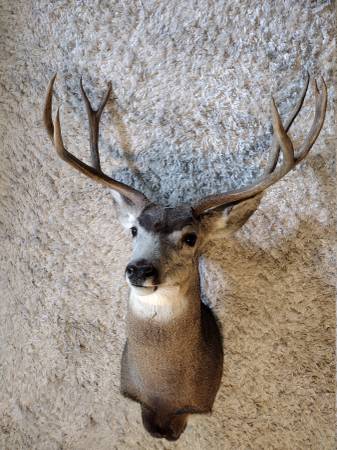 Large 9 pt Mule Deer from Wyoming in great condition. Rack measures 25" width! Professionally mounted.