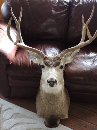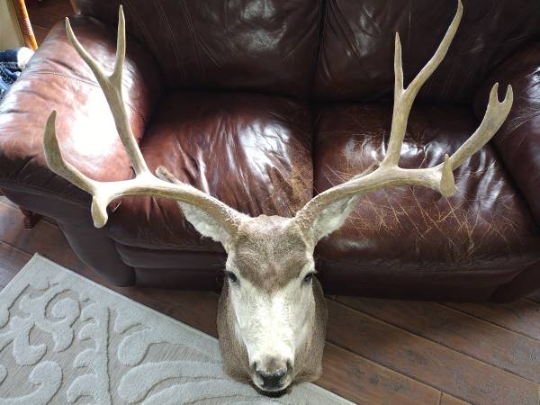 Large 9 pt Mule Deer from Wyoming in great condition. Rack measures 25" width! Professionally mounted.