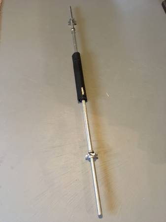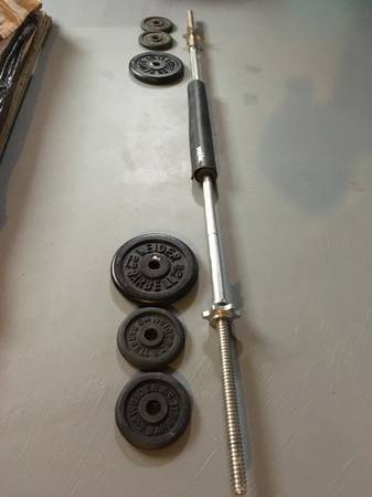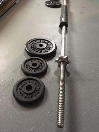Weider Chrome Barbell Set Classic Weider barbell set including: Barbell with EZ spin collars Foam neck rest (2) 10 lb. weights (1 inch hole) (4) 3 lb. weights (1 inch hole)