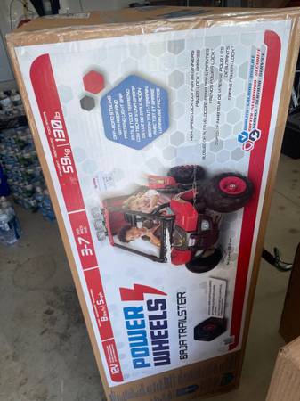 BAJA Trailster jeep 2 seater ….12V Never opened box Battery and charger included High speed lockout for beginners, power lock brakes. Drives on hard surfaces in grass