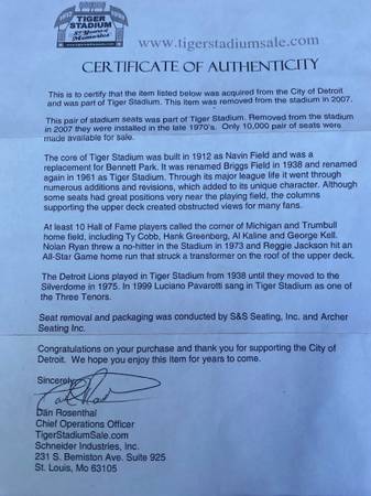 Up for sale is this Vintage Original Detroit Tigers Stadium Blue Chair Seat #2 & #3 Authentic Letter