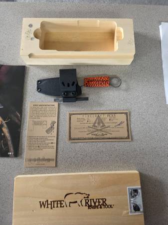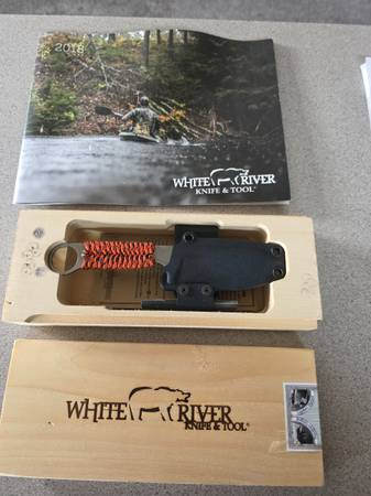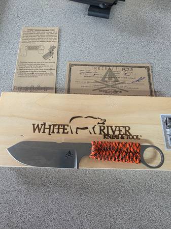 7.5 in long in total. Hand forged by the white river knife company based in Michigan, life time warranty!!!!, very cool very WELL MADE!!, not a cheap one here. Paid $250 in 2018 never used! Porch pu...