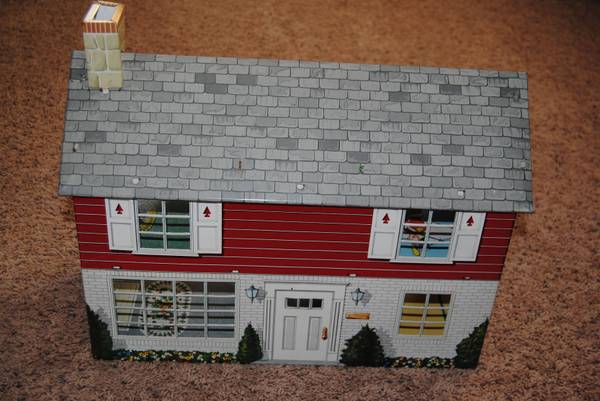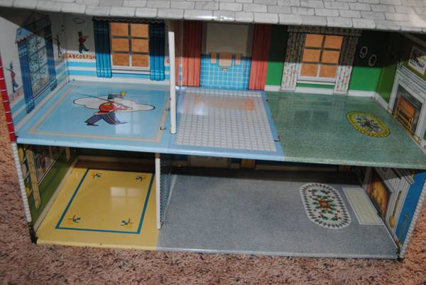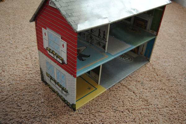 Old Marx Toys tin litho doll house Two story colonial with chimney Some wear but nice overall 18.5”x8”x14” tall Best offer
