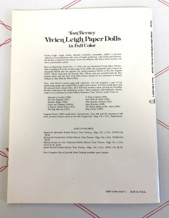 1981 "Vivien Leigh" Paper Doll Book by Tom Tierney - This paper doll book is unused and like new. I will be listing a lot of vintage and collectible items so be sure to check out my other listings....