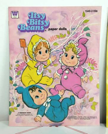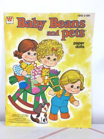 Two Vintage 1970's "Itsy Bitsy Beans" & "Baby Beans" Paper Doll Books - Included are "Itsy BitsyBeans" from 1975 and "Baby Beans & Pets" from 1978. Both are from Mattel and Whiteman Publishing product and are unused. $20 for both.