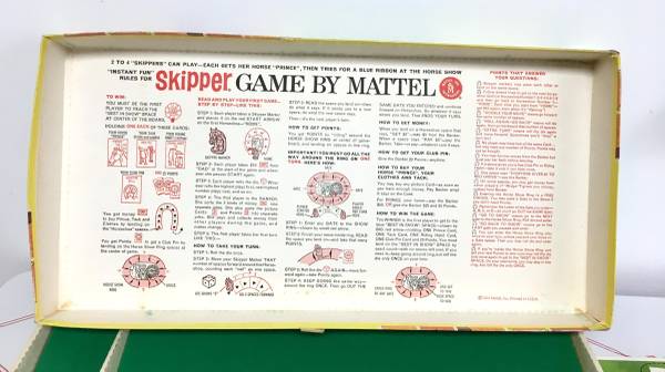 Vintage 1964 Mattel Barbie's Sister "Skipper" Game - This game is in excellent condition. It looks to be complete, but I can't be 100% sure without counting all the cards and money. It does include gameboard, die, four game pieces, money and two styles of game cards.
