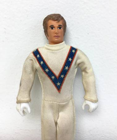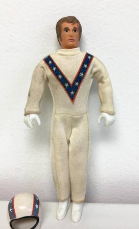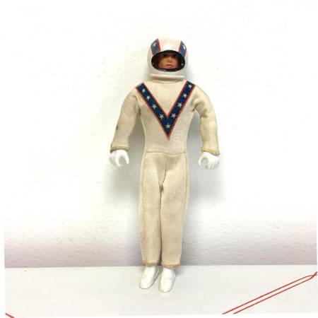 Vintage 1970's "Evil Knievel" Poseable Figure with Helmet - This Evil Knievel figure comes with his helmet and is poseable. In good condition, but he does need to be cleaned.