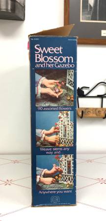 Vintage 1976 "Sweet Blossom and Her Gazebo" Doll - By Mego - What an absolutely fantastic set this is! This would make an AWESOME display piece. Although the box has been opened, it looks like everything is there. Includes doll, five wall panel pieces, gazebo roof with attached swing (even the yarn ropes are perfect), two benches (three pieces each), swing seat strap, bag of flowers and instructions. The box even still has all its packaging. In excellent condition. Model #61810. $10