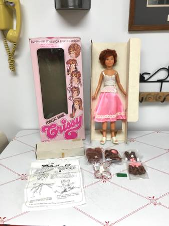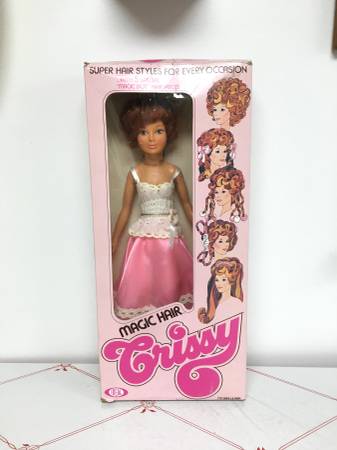 Vintage 1977 "Magic Hair Crissy" Doll - Complete - This Crissy doll is new in her box and includes the doll, dress, shoes, five hair pieces and directions. She is made by Kenner and is approximately 18.5" tall. $40
