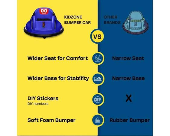 [360 DEGREE SPIN] Bumper car with 360-degree spin for more smiles and greater riding fun. Ideal for toddlers and kids aged 1.5-6 years with a maximum weight capacity of 66 lbs.