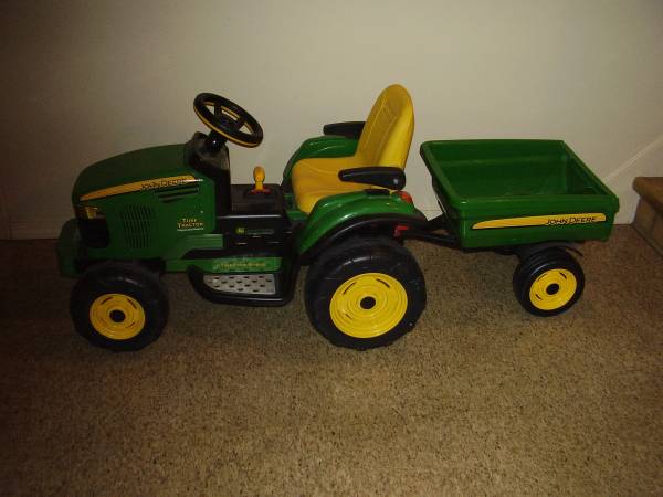 John Deere Turf Tractor with Trailer 12-volt battery and charger 2 speeds with reverse adjustable seat 85 lb weight capacity