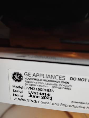 GE overhead kitchen microwave oven. Model jvm316. With fan. New. We didn't needed, too big for our kitchen under the cabinet. It was given to us.