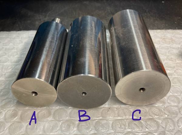 Choice. $20 pair. Choice: A] 4” OAL. 1-1/4” diameter x 3” x 1/2” diameter stem. B] 4” OAL. 1-1/2” diameter x 3” x 1/2” diameter stem. C] 4” OAL. 1-1/2” diameter x 3-1/2” x 3/4” diameter stem.