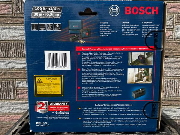 LAZER LEVEL BOSCH NEW 100 FOOT + / - 1/4” $60.00