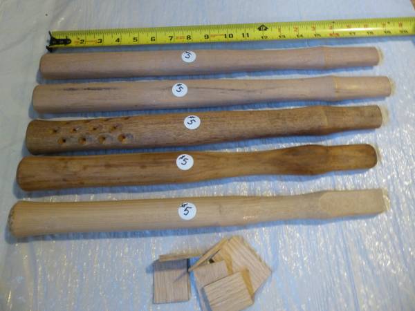 Large Hammer and Hatchet handles. Hickory with wood wedges. $5