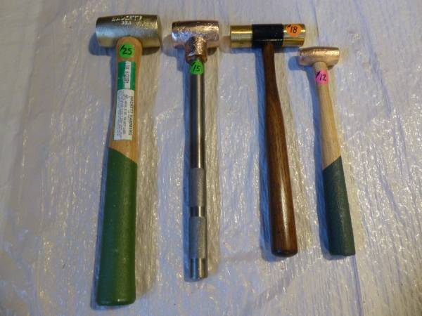 Ball peen hammer 5 oz. fiberglass handle. USA. Excellent. $5. Ball peen hammer 12 oz. fiberglass handle. USA. Excellent. $5. Proto, 20 oz. ball peen. USA. Like new $18. Ball peen hammer 10 oz. USA. Like New. $6. 48 oz. ball peen. USA Like New. $22. 38 oz. ball peen. USA. Like New. $18.