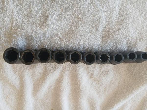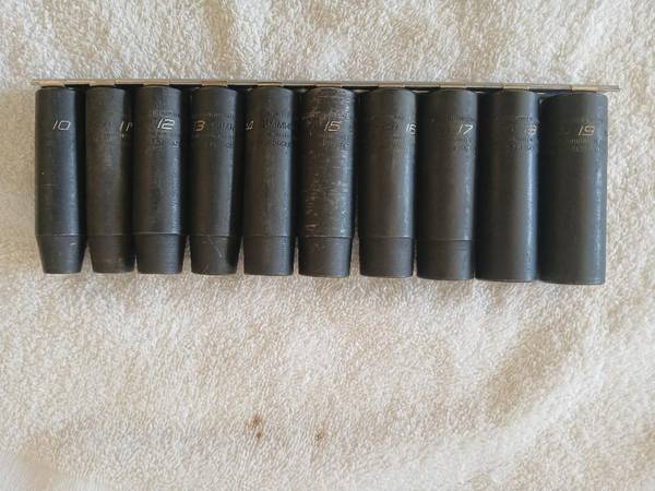 Snap-on 1/2" Metric Deep Impact sockets 10 piece set 6 point 10mm-19mm Like new (only the 13 & 15 were used) Call Ron Please leave a message