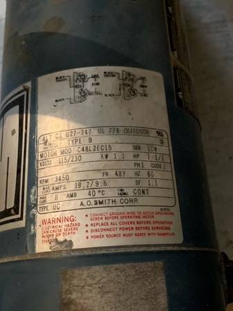 Sta-Rite pump, self priming, 1-1/2HP, 115/230 volts