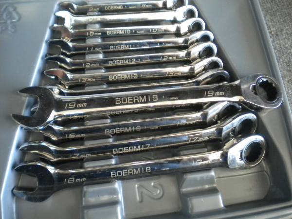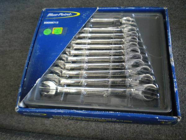 Blue Point 12 pc, 12-Point Metric 15° Offset Ratcheting Combination Wrench Set, 8-19 mm Model BOERM712 in Like New Condition. Very little use. Comes as seen in pics. Please call show contact info