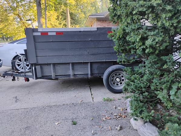 Just bought a bigger trailer this one is 5 ft x 10 ft the sides of approximately 41 in tall 2 inch ball the lights work has a crank down Jack on the front the floor is made of treated 1x6 deck boards steel mesh rear ramp located at 6 Mile merriman in Livonia call or text 734-788-564 0