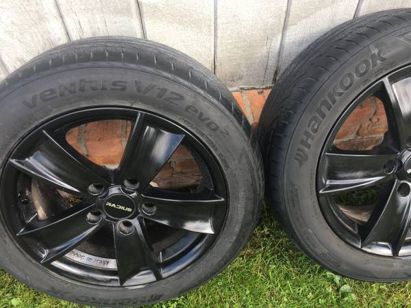 Radius Custom black wheels with Hankook Ventus V12 evo2 (205/55 ZR16) tires. For BMW 3-Series. Good condition. Asking $275 / best offer.