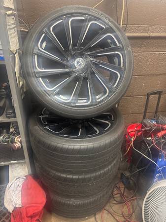 I have a set of 20 inch rims for sale had them on a 2017 Buick lacrosse they are a little ding up I have extra rubber just in case asking 300