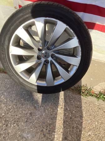 4 usable Lincoln rims, tires on & usable, look at pics, have been used, superficial scratches and scratches,knicks, dirt & grime are present, cash only, no holds, no other way of sale other...