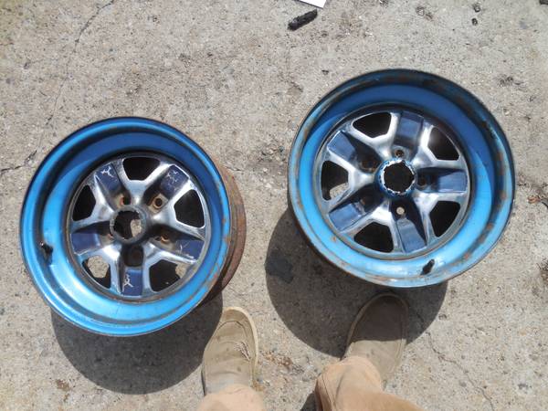 Pulled these wheels out for a guy and after a week of hem-Hawing, he didnt get them so here's your chance. These are off a 1975 Cutlass Supreme. They have chrome centers so they used no ornaments. Pics tell it all. Call if interested. Thanx