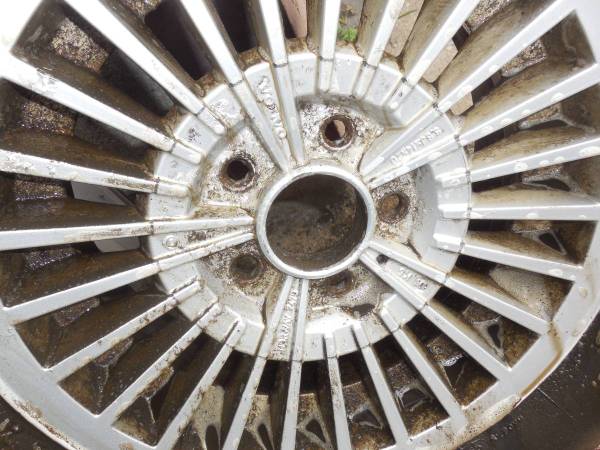 I had probably 10 of these wheels as seen in the photo. I only have 4 left and 3 are pretty are badly pitted and would need to be blasted and painted or powder coated. 30 bucks@ and take one, 2, 3,...
