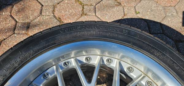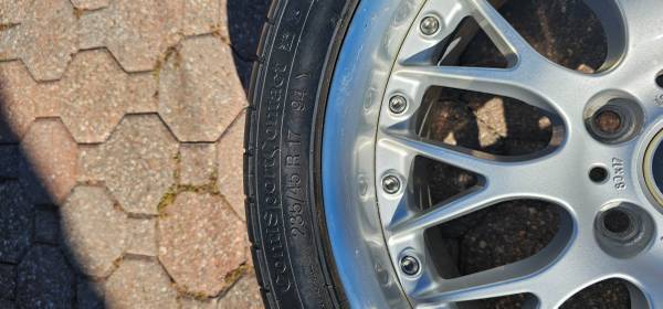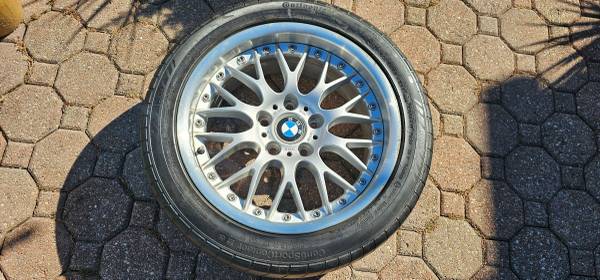 Selling One BMW OEM BBS Style 42 wheel and tire. Wheel Size 17 inch, Tire Continental Conti Sport Contact, Size 235/45R/17. Tire has about 80 percent tread left on it.