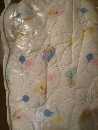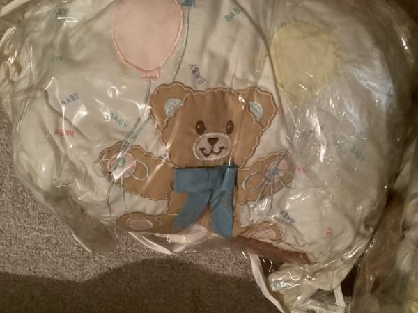 Vintage, bear themed, crib set. Sheets, bumper, pillow. Can’t remember what else is in there. The bags were/are vacuum sealed to store. Porch pick up. Email only. Will delete when gone.