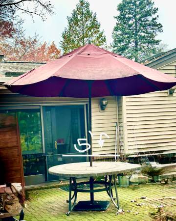 FREE heavy duty quality patio table w/giant umbrella and 2...