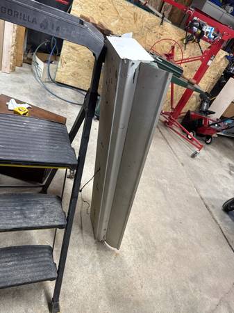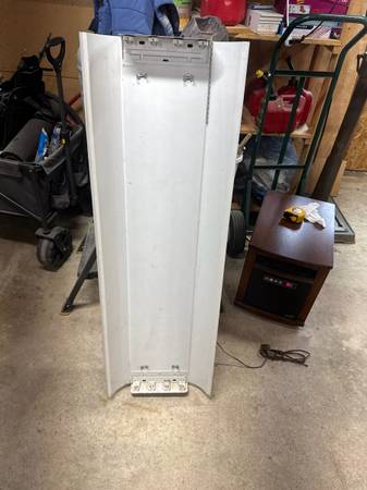 Four tube fixture, 4 feet long. Works perfectly, putting new lighting in my garage. I also have a box of tubes. Some are still good.