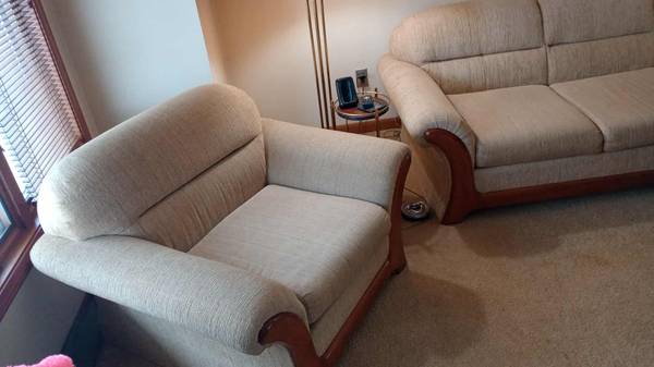 Free sofa and chair. Good useable condition. Had very light use. No damage, no pets. Must remove asap. You move it. Call ONLY. NO email or text message!